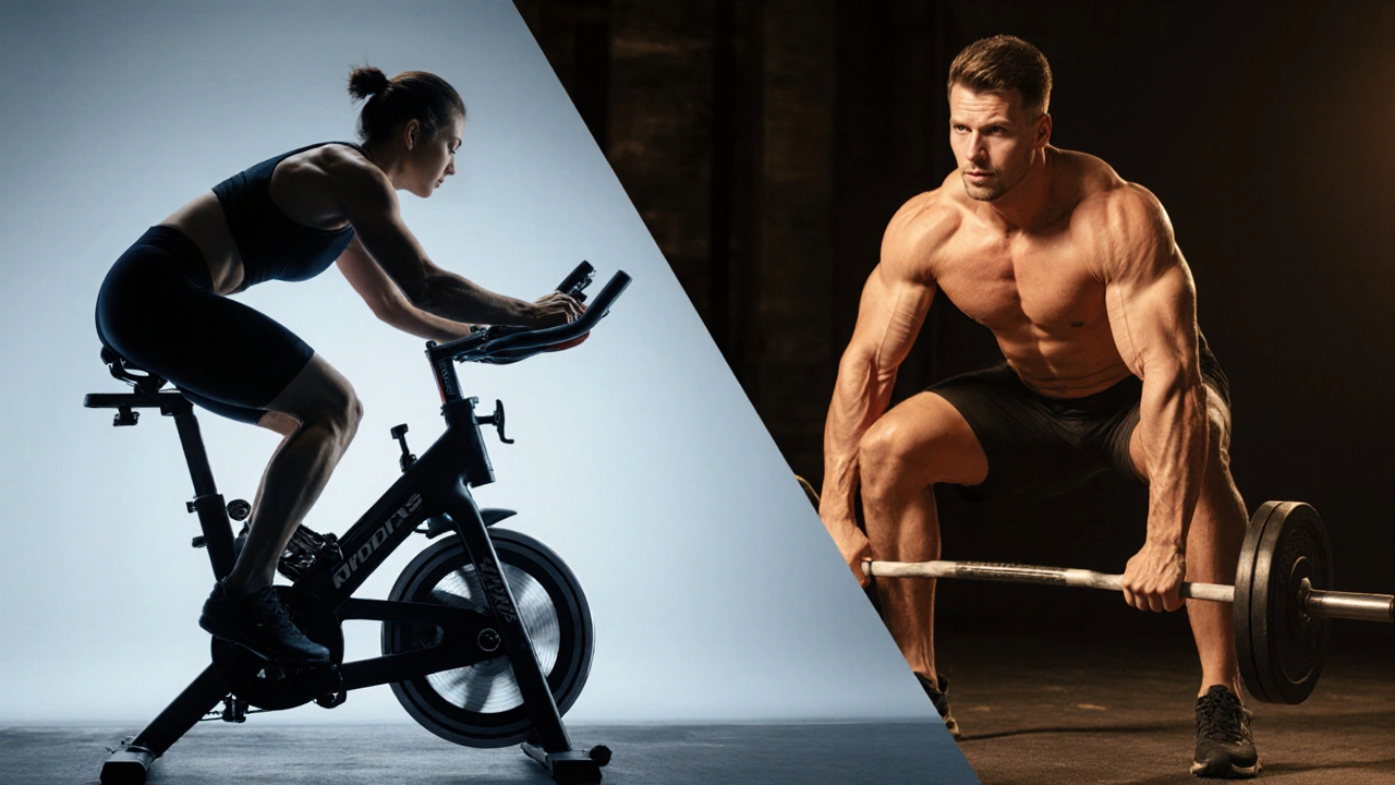 Per la perdita di peso è più efficace combinare cardio ad alta intensità (come l'air cycling HIIT) con esercizi di forza (squat) perché aumentano il metabolismo a riposo.